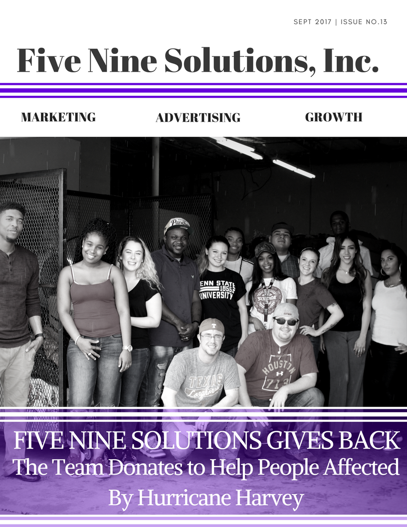 The extent to which Five Nine Solutions' management values their staff is indescribable. It was witnessed firsthand during this interview. Discussed, at length, was the priority that is placed on valuing their fellow staff. It is clear that the Five Nine Solutions' Management Team shows their appreciation in many ways as do their clientele. To learn more about the Five Nine Solutions culture as well as their philanthropic efforts, visit their website at www.fiveninesolutions.net
